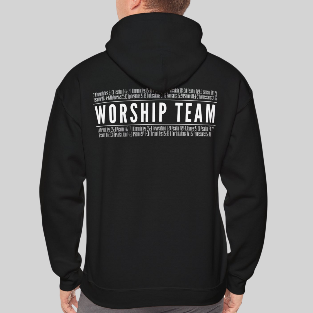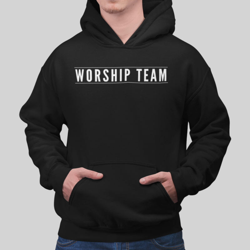 Our “Worship Team” collection mens heavy blend hooded sweatshirt is made with purpose and comfort in mind. Our sweatshirt is designed to be a versatile addition to your wardrobe. The heavy blend fabric provides warmth and coziness, making it ideal for layering during chilly church services or outdoor events. In the front, the spacious kangaroo pocket adds daily practicality while the hood’s drawstring is the same color as the base sweater.