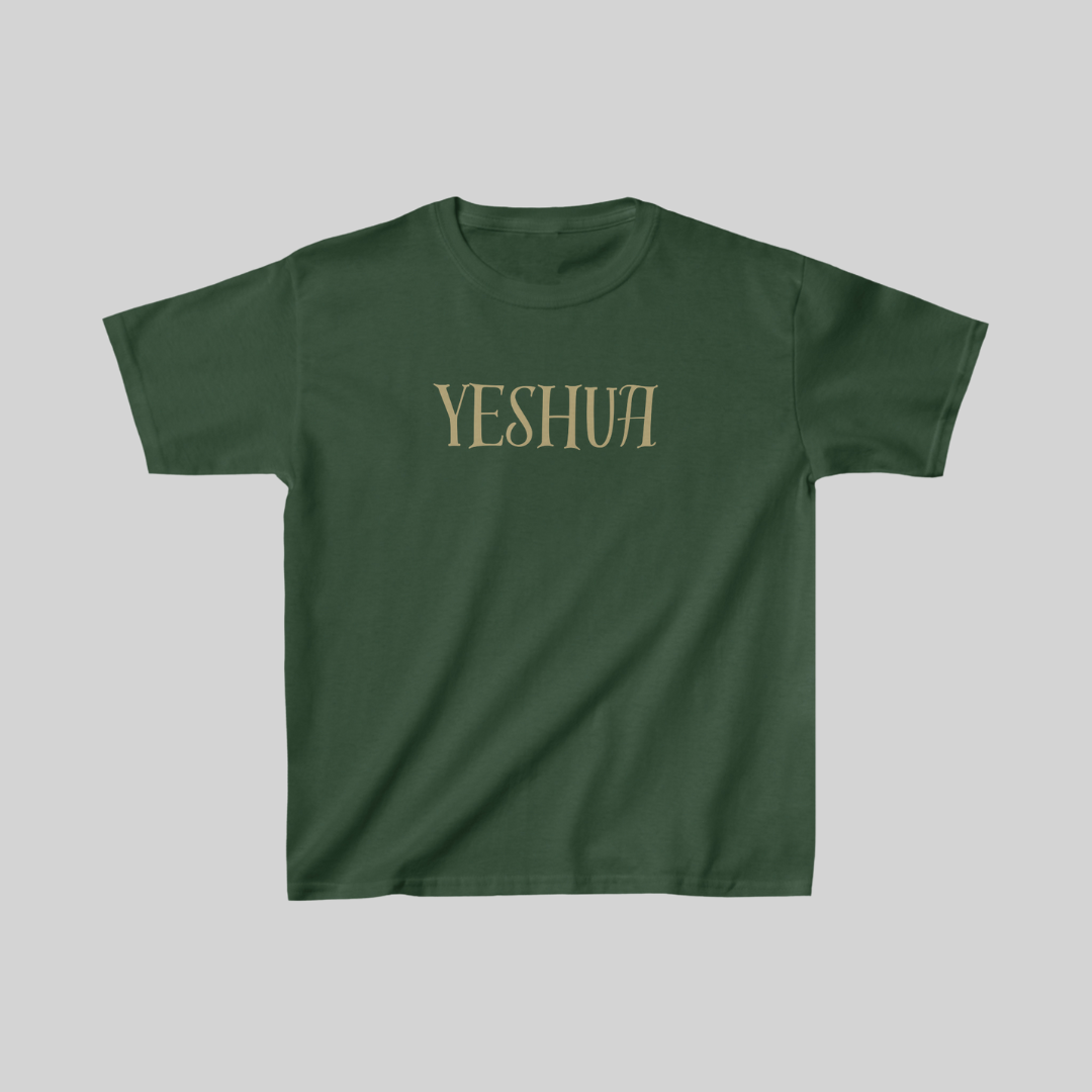 Introducing our Young Boy “Yeshua” Heavy Cotton Tee! Wrap your young warrior in the love and strength of Yeshua (Jesus) with this beautifully designed tee, crafted to remind him of the powerful presence of Christ in his life. The kids heavy cotton tee is perfect for everyday use. The fabric is 100% cotton for solid colors. Polyester is included for heather-color variants. These fabrics are prime materials for printing. The shoulders have twill tape for improved durability. The collar is curl resistant due to ribbed knitting. There are no seams along the sides.